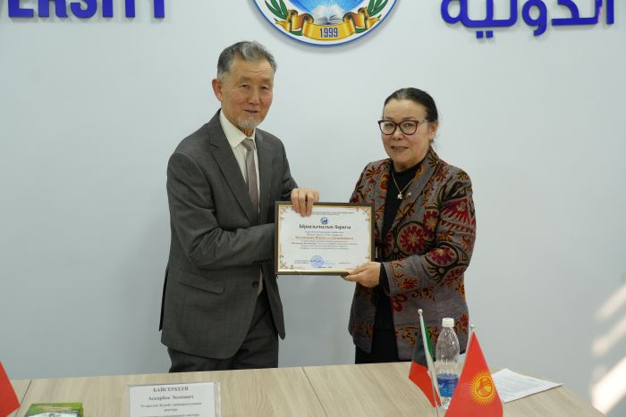 - Болджурова Ишенгуль Садыковна – Кыргыз Республикасынын мурдагы Билим берүү жана илим министри, Кыргыз Республикасынын Атайын жана Ыйгарым укуктуу Элчиси, Кыргыз Республикасынын билим берүүсүнө эмгек сиңирген кызматкери, профессор, педагогика илимдеринин доктору;
