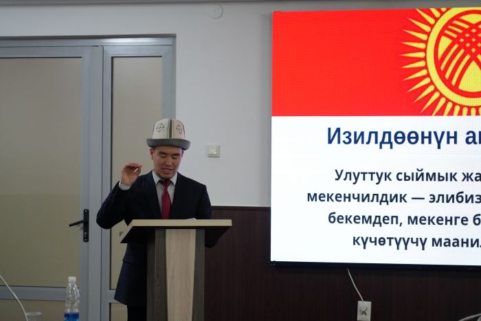 - Жамалбекова Гүлнур Асанбековна – ЭКУнун “Социалдык-гуманитардык, табигый дисциплиналар жана дене тарбия” кафедрасынын доценти, Кыргыз Республикасынын билим берүүнүн мыктысы, Кыргыз Республикасынын Президентине караштуу Мамлекеттик тил жана тил саясаты боюнча улуттук комиссиянын “Кыргыз тили” төш белгисинин ээси;